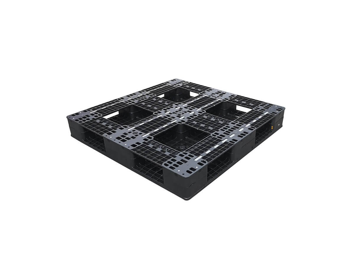 1100×1100 Six Runner Open Deck Rackable & Stackable Black Plastic Pallet F1111WTC